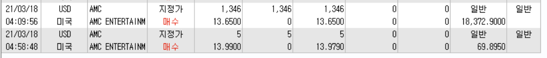 3/18 미국장을 오랜만에 프리장부터 본장까지 차트를 지켜보면서 AMC 주식을 추가로 매입했다.